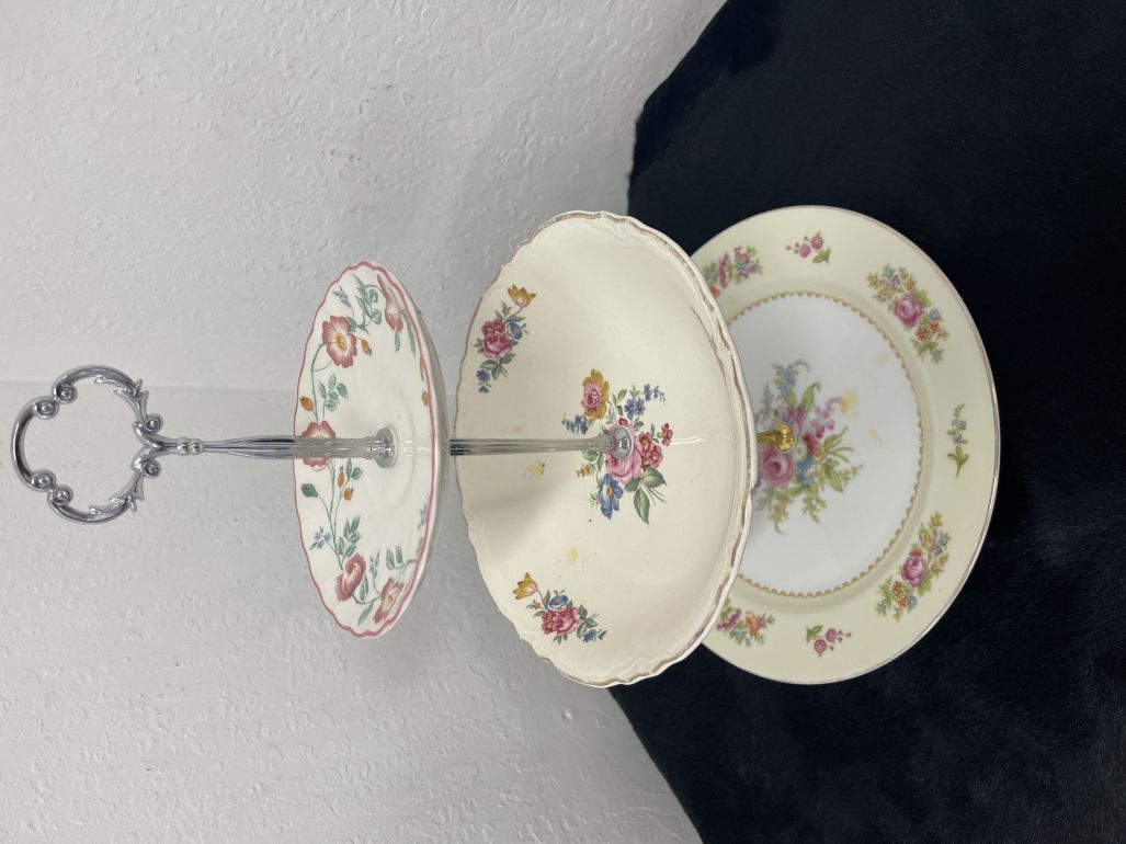 Serving Tower, 3 tier with plates and gold stand